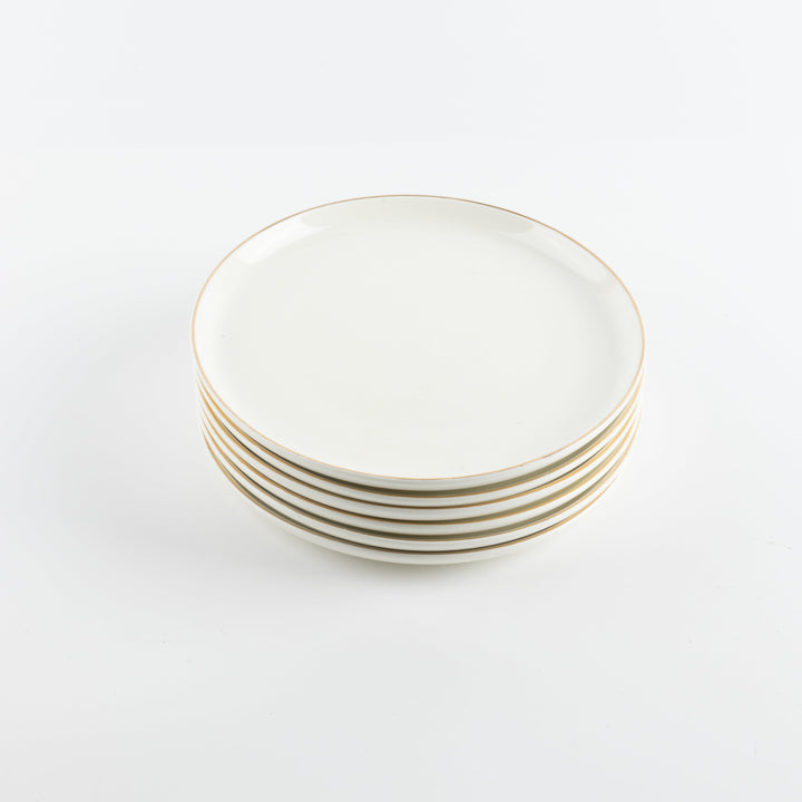 6 Serving Plates From Liqaa - Pearl White + Gold