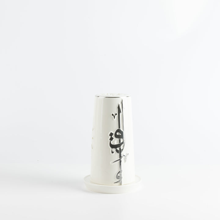 Medium Electronic Candle From Liqaa - Pearl White + Silver
