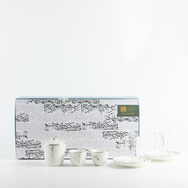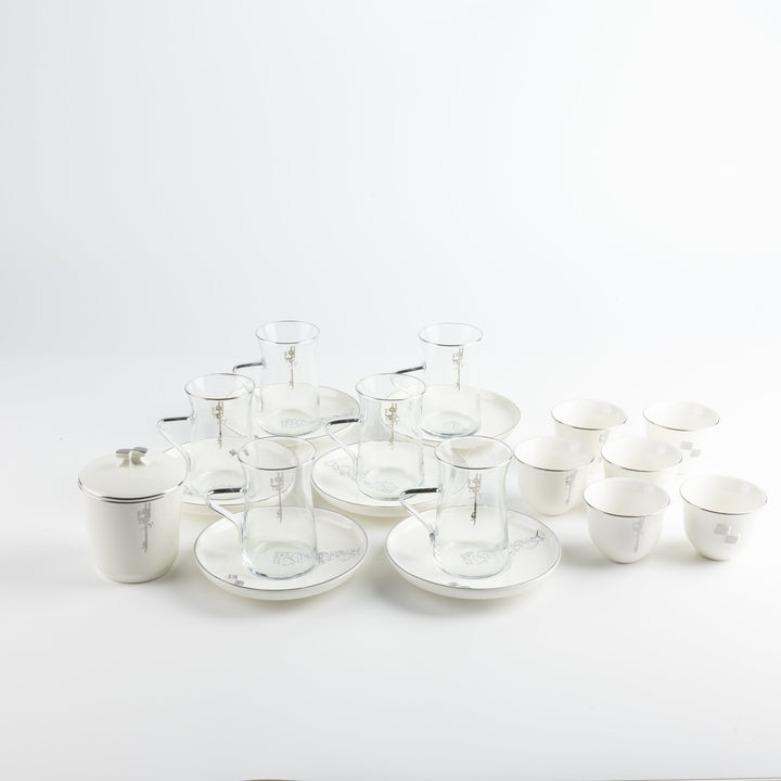 Tea And Arabic Coffee Set 19 Pcs From Liqaa - Pearl White + Silver